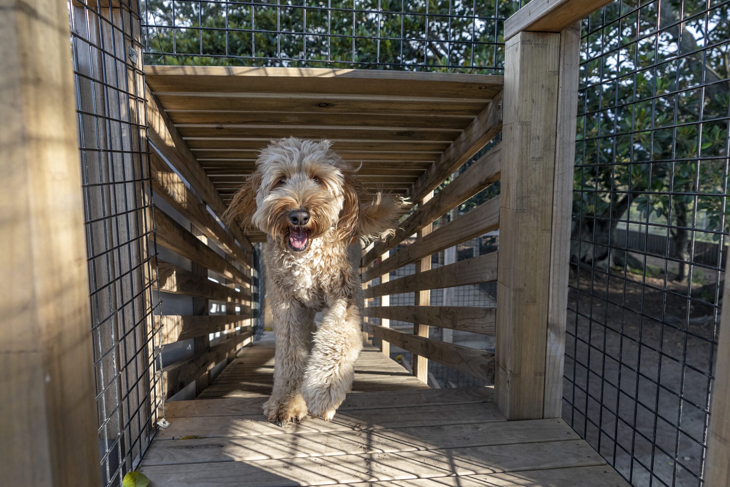 Dog boarding with us is a fun holiday for your dog too! Your dog will have a great stay with us. We have large, well-insulated indoor kennels, including a dog bed, two meals (Man’s Best) a day, lots of exercise in our themed compounds.